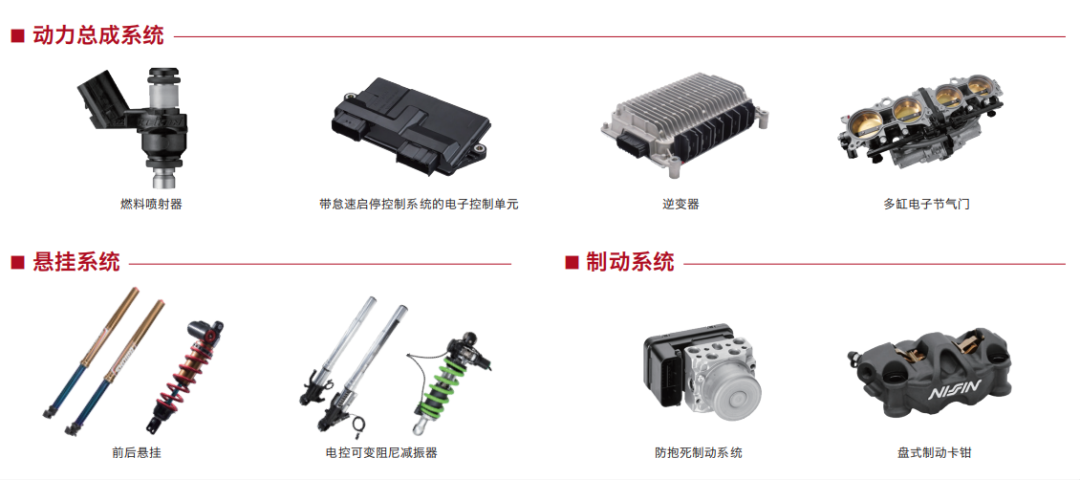 以卓越环保性能的动力总成系统、兼具操控稳定性与驾乘舒适性的悬挂系统、提升车辆安全性的制动系统等先进技术与产品,引领摩托车的发展。