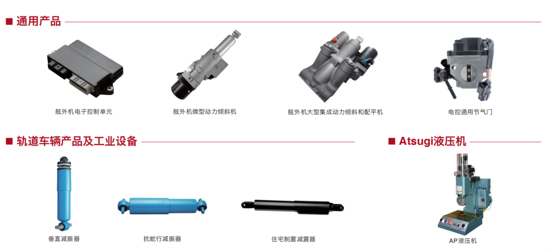 把汽车、摩托车相关产品中研发的优势技术,拓展应用到定制产品、维修部件、通用产品、铁路车辆产品、住宅制震产品、工业设备等领域,以优质产品打造宜居社会。(来源:企业官网)